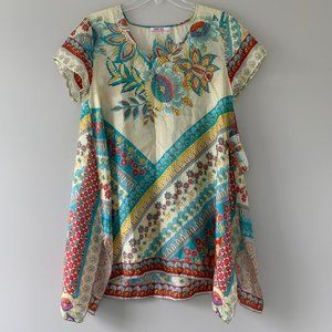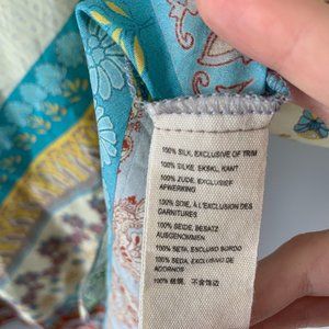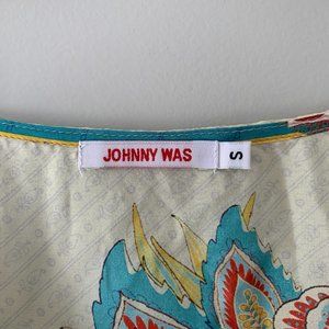 Sold Out Online. New with tags Johnny Was 100% Silk Endo Tunic. The Johnny Was Signature Silk ENDO TUNIC features a playful print that combines geometric border elements and graphic florals in a springtime-inspired color palette. Pair this flowy tunic with linen pants and jeweled sandals for spring Sunday brunch with the family!
