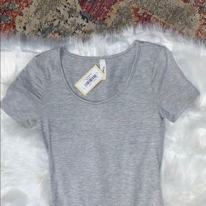 New with tags - gray scoop neck - t-shirt bodysuit - snap button - super soft + comfortable