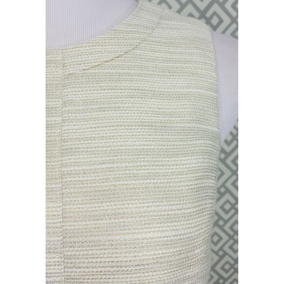 In excellent condition. Size Medium. Ivory & shimmering gold in color with a striped design. Acrylic blend. Zipper in the back for an easy slip on.