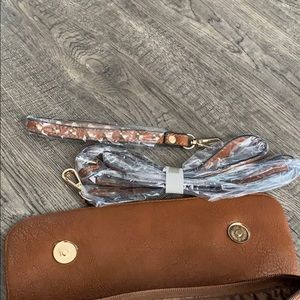 11 in x 6 in studded clutch with wristlet strap and shoulder strap never used