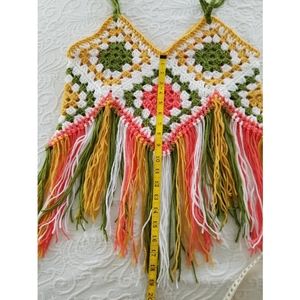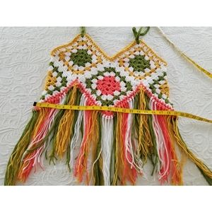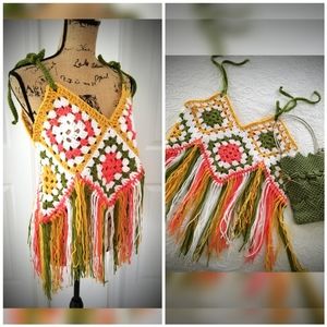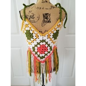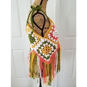 Fringed crop top granny squares boho hippie crochet