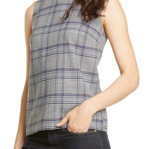 $199 Sleeveless Plaid Shell Purple Large PA97
