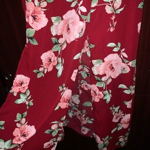 Beautiful red flowy maxi skirt, with 2 slits.