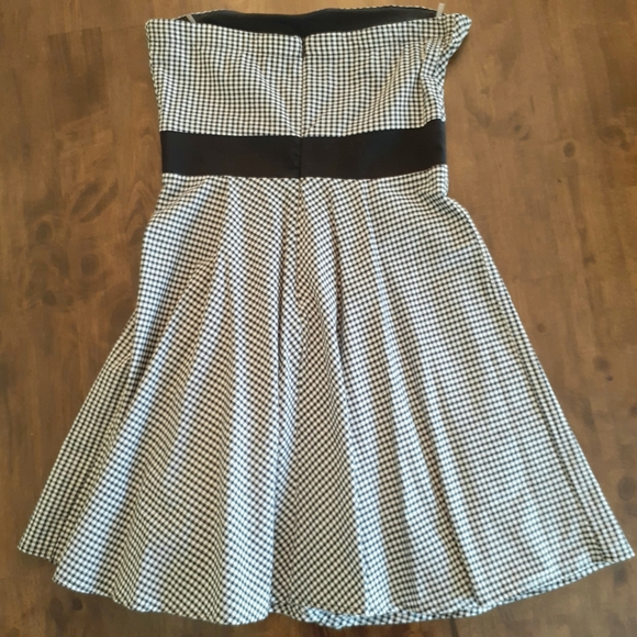 Black and White Gingham Strapless Dress