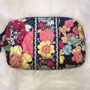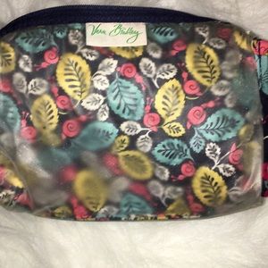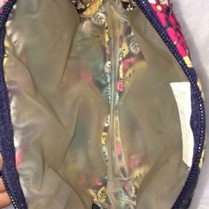 Gently used Vera Bradley cosmetic bag.Flowers with inside plastic lining.Two side pockets on each side.