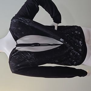 ANAMA graphic long sleeve tee with an open back. Ties up on top. Wide neck. Unfinished ends of sleeves. Some rhinestones on the front within the print. Loose top but is more fitted around the waistline. Perfect condition. 49% cotton 49% modal 2% spandex. 15.5" from armpit to bottom. The tag has no size but I only ever purchase large size.