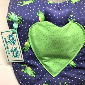 New! Handmade adorable blue with green happy frogs baby bib! Machine wash and dry, remove able cute little toy bear in fron heart pouch, easy Velcro open/close, lightweight & reversible! Please see pictures for the details! Thank you