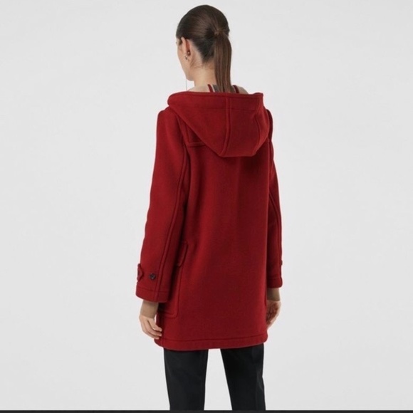 BURBERRY BRIT BLACKWELL HOODED DUFFLE COAT. Pre-owned condition, no fading, some signs of wear see last pics, no dust-bag. Color is like dark red/maroon