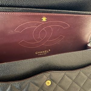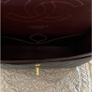 This bag is in mint condition rarely used. Jumbo classic double flap Chanel bag. Perfect size to fit what you need but not too large that it can’t be taken out in the evenings. A classic that only goes up in price every year. Gold hardware. Caviar leather. I couldn’t get a pic of the inside because of the shape.