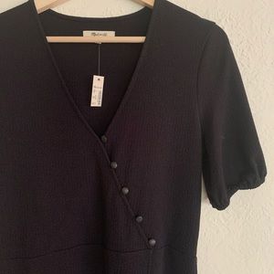 Madewell faux wrap dress with buttons along the side. Puffed sleeves with elastic around the bottom. V neck line. New with tags!
