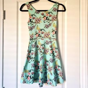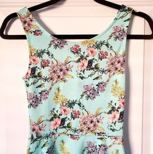 H&M floral fit & flare dress mini blue sleeveless summer size 2