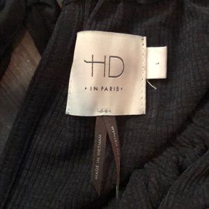 This is NWOT. It has never been worn. You can tell from the stock photos that it is supposed to be Capri ... not on me. ☹️. It is a wonderfully soft fabric with a bit of rib to it. Ties at the waist, keyhole at back with adjustable ribbon tie. It is almost a grey/black colour.