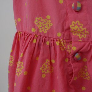 Cute dress in great condition! Coral pink with yellow flower details and blue trim.