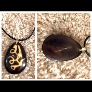 Beautiful tagua nut pendant on a black leather chain, with extender.