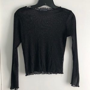 Description: super rare and discontinued brandy Melville top! Has lettuce cut edges and sliver sparkles! Sheer mesh material would look great on top of bralette!!
