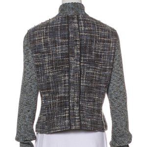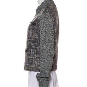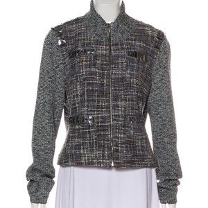 ST. JOHN Gray Embellished Tweed Wool Cardigan Sz L