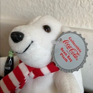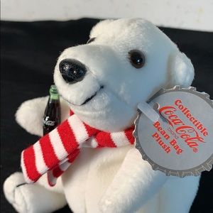 Vintage 1999 Coca Cola Collectible Polar Bear Plush in Red Striped Scarf. Swing Tag notes 1999, but Tush Tag notes 1998. MINT CONDITION; NEVER USED OR DISPLAYED. Stored in air-tight container since date of purchase. Polyester Fiber & Plastic Pellets. Measures Approx. 4 1/2 Inches. I’m the original owner of this vintage collectible piece. Item comes from a smoke-free, clean home.