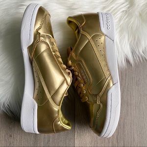 A flashback for your feet. These adidas Continental 80 Shoes rewind it back to the era of leotards and leg warmers. The metallic upper adds some shine to your daily style.