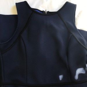 Super flattering, skater skirt, black & blue mesh detailing dress by XXI