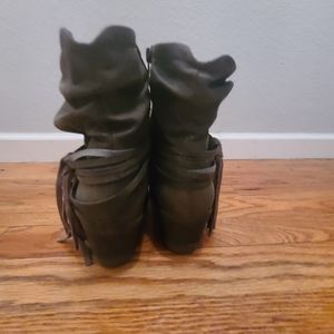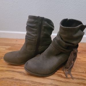 Gray size 7 booties great fringe detail. Please see pic for scratches on toe.