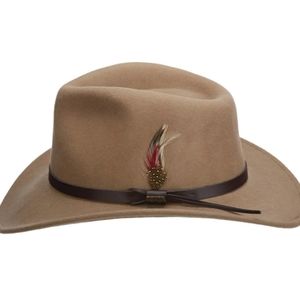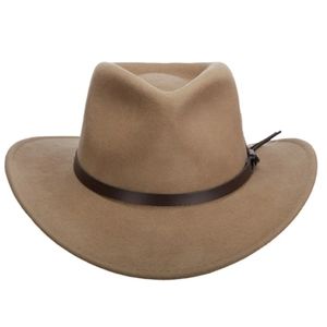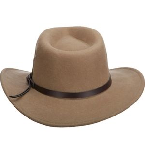 This best selling 100% wool DPC Outdoor Design Outback shaped hat is crushable and water repellent. This All Season Crushable hat features a 3 inch brim and has great looking fedora styling with a western flair.