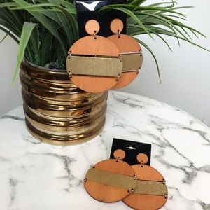 ‼️ Painted Wood Circle Drop Earrings Boho Style