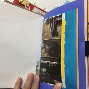 Handmade Junk Journal-Fantasy Dragon Throne Theme. Overstuffed, too fat to use leather dragon tail closure with hook & loop. Getting better at making these journals. Dragon themed w/ephemera about Dragon show.Cover- green acrylic paint over black silk fabric. Tassel, Loads of surprises, pads, pieces to discover, 1 embellished paper clip.Lots of room to journal/diary. May have to remove some pages to use leather closure bc too stuffed. Signatures are a little loose, may need to be tightened.