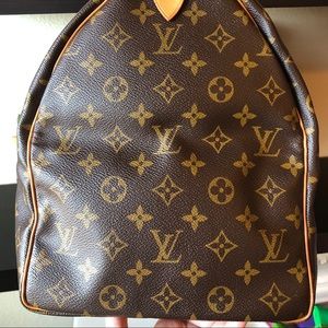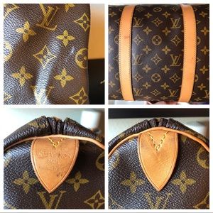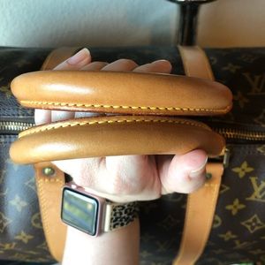 Authentic Louis Vuitton Keepall 50 in monogram. Great overnight or weekender size. EUC with light & bright vachetta with only minor spots to leather and some darkening around rivets and metal, one small white scuff to canvas, and a few spots on interior (all shown). Canvas is in excellent condition and all corners & piping are intact. Date code: SP0913 (made in France January 1993). I can’t believe how amazing she looks for her age! (Will be shipped folded flat, like store does.) Retails $1600.