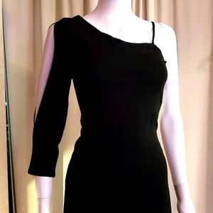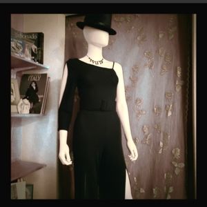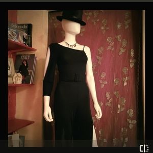 One shouldered/one sleeved black Jumpsuit has a slit down most of the sleeve, which is 3/4 length & has slits that start at the mid thigh to end which creates a very flowing open effect. Jumpsuit is gently fitted throughout body & hips. It has a side zip closure with a hook and eye π! I had a strap put on the left shoulder for added support. Pit to Pit is 14in. Waist is 12-13in. Inseam is 32in. The material has a good amount of stretch to it! π€πββοΈ If you have any questions please feel free to message me anytime! Thank you in advance π! π€ππβ οΈ