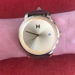 MVMT Watch - Gold with gold face and new brown leather strap. *Bonus: used but decent condition black leather strap. (No box)