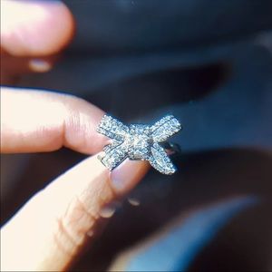 925 silver Sparkling Big Bow Knot Stackable Ring