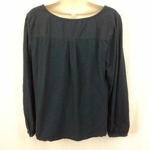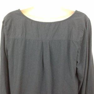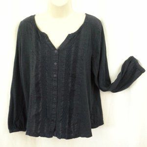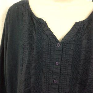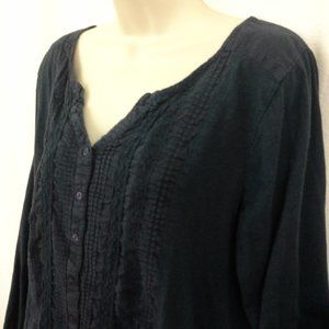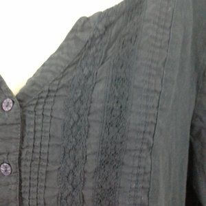 Gloria Vanderbilt women's top. Size L. Dark blue. Lace and tucks. Long sleeve. Button front. Boho. Peasant Folk blouse shirt. Back yoke. 100% cotton. Bust 44" (112 cm), back length 22" (56 cm). Location 2908-eV. Non-smoking cat-friendly home.