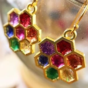 These multi-colored glitter in resin honeycomb earrings are fun, colorful and representative of so many things. Rainbows are meaningful to so many people.