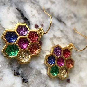 Earring - multi-colored honeycomb glitter