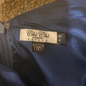 Worn once. Very flattering Navy fit and flare off the shoulder dress.