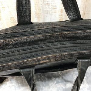 Great Distressed leather, trendy contrast stitching and assorted organizational pockets. Adjustable strap.