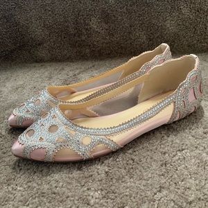 XYD Women Elegant Pointed Toe Rhinestone Flats Mesh Slip On Wedding Bride Dress Shoes