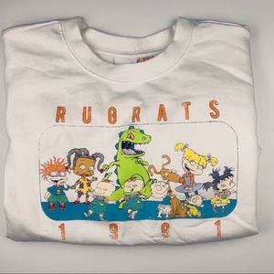 BNWOT Cute White Nickelodeon Rugrats Crop Drawstring sweater sweatshirt top. This sweater is super cute and extremely soft? This sweater features the whole rugrats crew and has the writing rugrats and 1991 on the top and bottom of the crew.