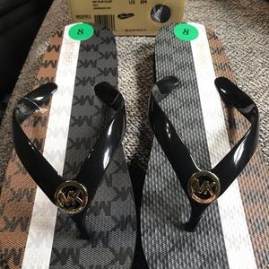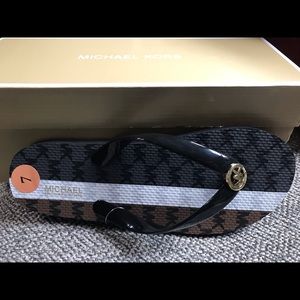 BRAND NEW MICHAEL KORS BLACK MULTI FLIP FLOPS.