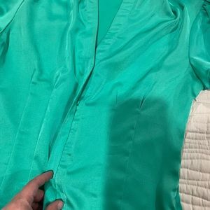 This is a very nice dress blouse in a light Mint’ish Aqua green type of color. What I love about this blouse is that you don’t have to worry about buttons because it’s sown down in the front with a side zipper so it’s perfect for work!! Only worn once!