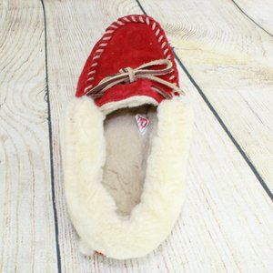 Women's red leather shearling lined slippers in excellent used condition. See photos. (B343d2p)