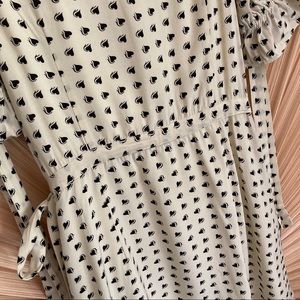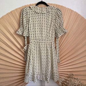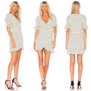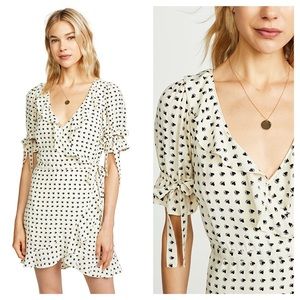 Gorgeous super femme wrap dress from For Love & Lemons 💛 Creme with floaty black hearts, ruffle edging, wrap style, and dainty tie accent sleeves. Fits true to size, best for a 26" waist. 33" long, NOT SUPER SHORT like a lot of FL&L.