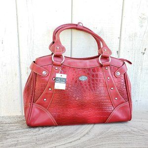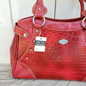 NWT Vieta Red Crocodile Faux Leather Handbag Bag