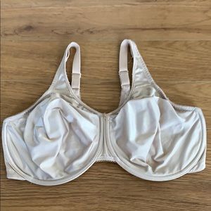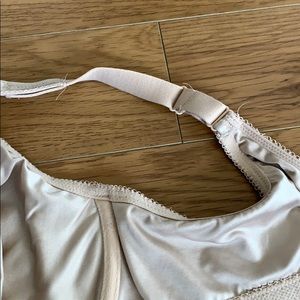 Gently worn. Smoke/pet free. Signs of wear as shown. ultra-soft Bodysuede fabric and the natural shaping that comes from the seamless, underwire cups. Coverage: Full coverage; full-figure fit. Support Level: Underwire cups with hidden side inner sling provide support Straps: Back adjustable close-set straps minimize slipping Cups: Unlined seamless cups of 2-ply. Bodysuede stretch fabric Special Features: Band and sides smooth and minimize bulge.