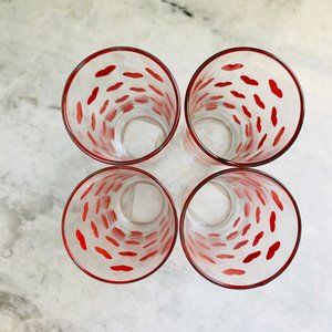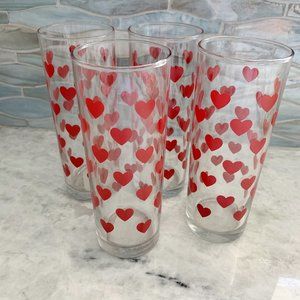 Set of 4 Red Heart Clear Juice Glasses / Tall Tumblers