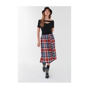 UO Briggs Plaid Pleated Midi Skirt
