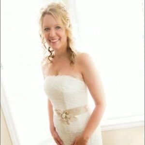 Floral headpiece with pearls and crystals. Wear this stunning headpiece on your wedding day. I wore around my waist clipped to ribbon belt. Comes with a salon clip attached to easily secure into your hair. I only wore this once on my wedding day. Color is Ivory and gold!