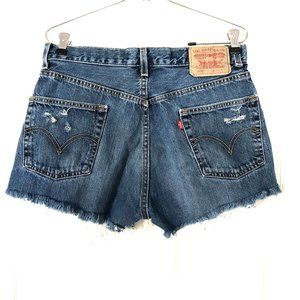 Levi's 505 cut off jeans, Size 31, 100% cotton, Festival, boho. Belt loop half way ripped off, can be sewn or fabric glued back on, otherwise good condition.