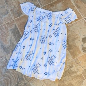M off shoulder summer Dress white with blue detail