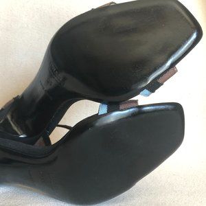 Prada High Heel Strap Shoes - Sandals Size 39 EUR - Size 9 US Worn once indoors. Beautiful condition - Please see photos Sole is Leather, the Straps are made of Leather and Grosgrain Ribbons Approximately 3.5" heel https://www.youtube.com/watch?v=23c_n4oVhbg at 1:25 the prada sole is the same